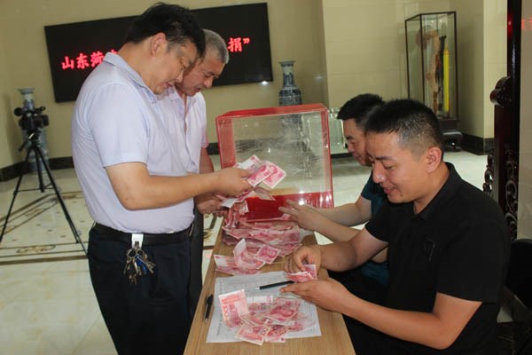 ![]() 捐 款 現(xiàn) 場 ![]() 工作人員清點募捐 |