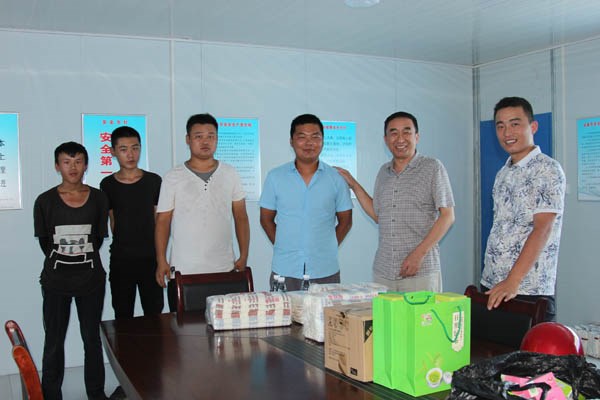 隨著7月份氣溫逐漸升高,連續(xù)多日氣象部門發(fā)出高溫預警,給集團各工地的施工建設帶來嚴峻的考驗,而我們的一線職工依然堅守在各自的崗位上。7月18日—20日,集團工會組織開展了暑期“送清涼”活動。在集團公司黨委書記、董事長李信強,總經理苗林等其他領導班子成員的帶領下,工會將毛巾、香皂、清涼油、綠豆、茶葉等防暑降溫用品,送到菏澤市縣區(qū)集團33個施工現(xiàn)場和5個生產作業(yè)單位進行慰問,為高溫奮戰(zhàn)在一線的職工送去一片清涼,讓大家感受到集團黨委和工會的關心和溫暖。