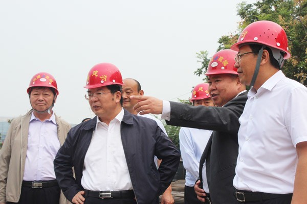 集團(tuán)總經(jīng)理苗林(右二)向陳平市長匯報(bào)項(xiàng)目建設(shè)情況