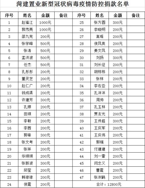 ![]() 菏建置業(yè)公司2個小時之內(nèi)捐款12800元 |