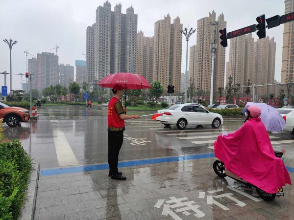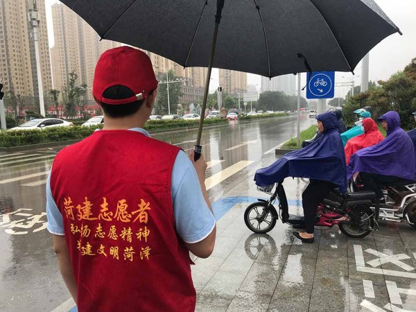 菏建國投志愿者冒雨開展文明交通勸導活動