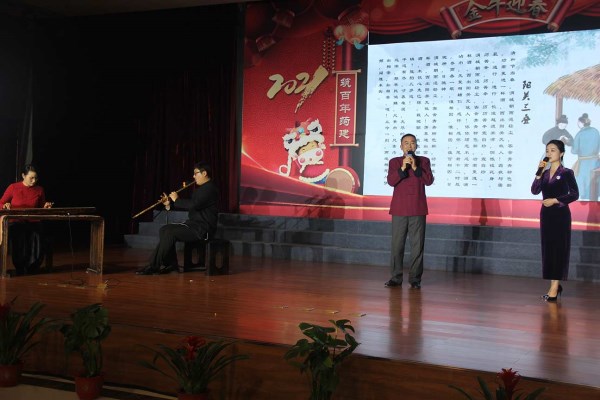 ![]() 菏建國投黨委副書記任永信(右二)帶來琴簫詠唱《陽關三疊》 |
