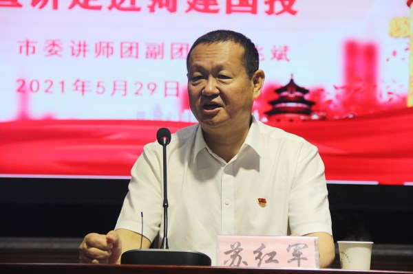 按照市委統(tǒng)一部署,5月29日,菏澤市黨史學(xué)習(xí)教育“專家學(xué)者進基地”巡回宣講走進菏建國投公司。市委講師團副團長徐兆斌以“開展黨史學(xué)習(xí)教育,汲取強大奮進力量”為主題,講了一堂生動而又深刻的中共黨史學(xué)習(xí)教育專題黨課。菏建國投黨委副書記、總經(jīng)理蘇紅軍主持會議并作重要講話。菏建國投領(lǐng)導(dǎo)班子,國投機關(guān)全體工作人員,各權(quán)屬單位領(lǐng)導(dǎo)班子全體人員,三級單位主要負責(zé)人參加會議。