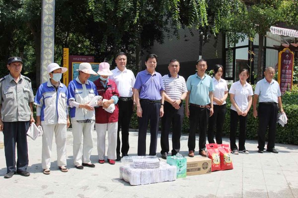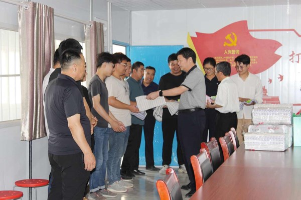 ![]() 為一線職工送去毛巾、茶葉、香皂、綠豆等防暑降溫用品 |