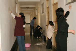 為使慶“五一”迎“五四”活動豐富多彩,二OO九年四月二十八日上午,菏建集團工會、團委和集團機關黨支部組織機關人員近四十人,集中進行了擦洗辦公樓內墻壁義務勞動。