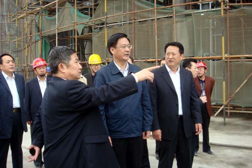 在市領(lǐng)導趙潤田、劉士合、王文生、王浩、支建立、高木斗、劉勇陪同下,劉偉一行深入施工現(xiàn)場,認真察看菏澤大劇院廣場建設(shè)情況和周邊環(huán)境景觀效果圖,聽取工程概況、規(guī)模、功能等方面的情況匯報,趙潤田書記對大劇院整體設(shè)想、規(guī)劃設(shè)計和使用功能等情況進行了介紹。省委副書記劉偉一行穿過鋼管搭設(shè)的腳手架,深入到大劇院一、二層作業(yè)現(xiàn)場,詳細了解各專項功能和作業(yè)進展情況。劉偉對菏澤大劇院高起點規(guī)劃、高標準建設(shè)給予高度評價,對工程的質(zhì)量和進度表示滿意。他指出,要充分認識建設(shè)大劇院的重要意義,堅持把社會效益放在首位,以更加奮發(fā)有為的精神狀態(tài)、更加求真務實的工作作風,進一步增強做好文化基礎(chǔ)設(shè)施建設(shè)的責任感和使命感;要把群眾滿意作為開展學習實踐科學發(fā)展觀活動的重要標準,堅持高標準,體現(xiàn)高品位,統(tǒng)籌協(xié)調(diào),加快大劇院建設(shè)步伐,在質(zhì)量上、時間上予以保障,確保工程質(zhì)量和施工安全,使之成為菏澤城市一張靚麗的名片。