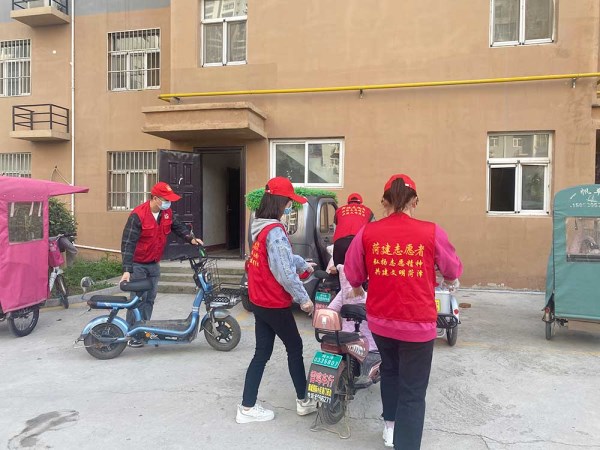 ![]() 志愿者們將擺放雜亂的電動(dòng)車(chē)、自行車(chē)搬到指定位置 |