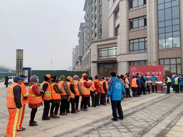 活動伊始,志愿者們按照計劃分工,井然有序地進行了活動準備。熱氣騰騰的臘八粥、香噴噴的包子和現(xiàn)場忙碌的身影吸引了很多路過群眾的注意,陸續(xù)有小區(qū)業(yè)主、建筑工人和環(huán)衛(wèi)工人前來領取,志愿者們熱情地把粥送到了大家的手中。冬日里一碗熱乎乎的臘八粥,不僅抵御了嚴寒,同時也傳達了置業(yè)公司黨支部對小區(qū)業(yè)主、建筑工人兄弟和環(huán)衛(wèi)工人的溫情關懷和新春問候。