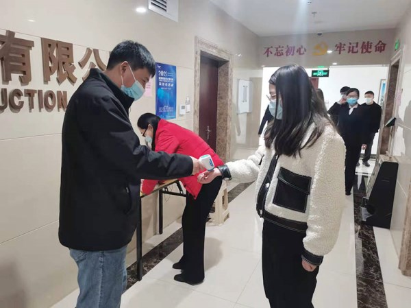 ![]() 在辦公樓和各項(xiàng)目嚴(yán)格落實(shí)戴口罩、測體溫、驗(yàn)“兩碼”等措施 |