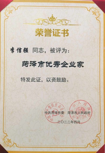 ![]() 菏建國(guó)投黨委書(shū)記、董事長(zhǎng)李信強(qiáng)被中共菏澤市委、菏澤市人民政府評(píng)為“菏澤市優(yōu)秀企業(yè)家” |