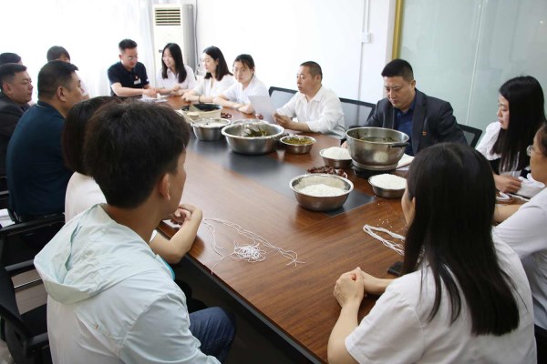 菏建教育公司開展了包粽子活動(dòng)?;顒?dòng)現(xiàn)場(chǎng)提前準(zhǔn)備好了糯米、粽葉、紅棗。從未包過粽子的“年輕人”虛心向“老師傅”學(xué)習(xí)請(qǐng)教,在認(rèn)真學(xué)習(xí)了選葉、折葉、盛料、壓實(shí)、裹葉、扎繩等包粽子的步驟后,大家圍站在一起,紛紛上手、互幫互學(xué)。只見一雙雙巧手上下?lián)]動(dòng),一片片粽葉、一粒粒糯米,在大家手中,變成了香甜可口的粽子,整個(gè)活動(dòng)現(xiàn)場(chǎng)洋溢著歡聲笑語。