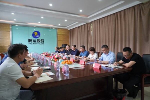 隨后考察團一行與騰遠股份進行了座談,騰遠股份總經(jīng)理陳俊宗介紹了公司的發(fā)展歷程和現(xiàn)狀,公司從2011年開始發(fā)展,注冊資金18166萬元,目前擁有巴頓菲兒德等生產(chǎn)線120余條和多項專利,管道年產(chǎn)能30萬噸、管件年產(chǎn)能6000噸,擁有13大生產(chǎn)基地,是集研發(fā)、生產(chǎn)、銷售為一體的高新技術(shù)企業(yè)。蘇紅軍對其發(fā)展成果給予了充分肯定。雙方就項目合作相關(guān)內(nèi)容發(fā)表了各自意見和建議。