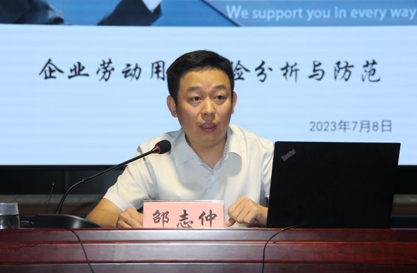 在講課中,邵志仲圍繞“企業(yè)勞動用工風(fēng)險分析與防范”,從勞動用工法律風(fēng)險、用工模式風(fēng)險防范、招聘錄用風(fēng)險防范、勞動合同風(fēng)險防范和職工離職風(fēng)險防范等五個方面,結(jié)合目前公司在勞動用工方面存在的問題和風(fēng)險隱患進行了詳細闡述。