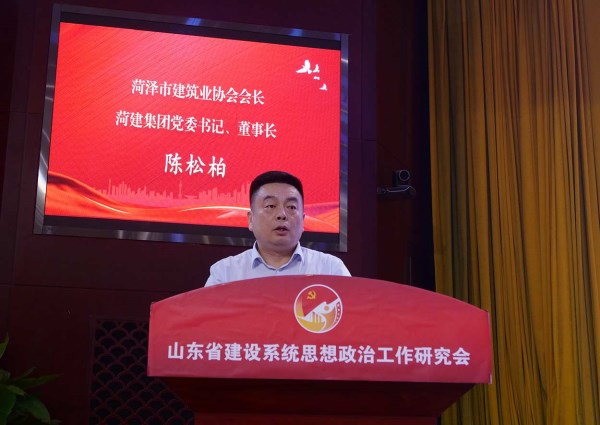 ![]() 菏澤市建筑業(yè)協(xié)會(huì)會(huì)長(zhǎng)、菏建集團(tuán)黨委書(shū)記、董事長(zhǎng)陳松柏作典型發(fā)言 |