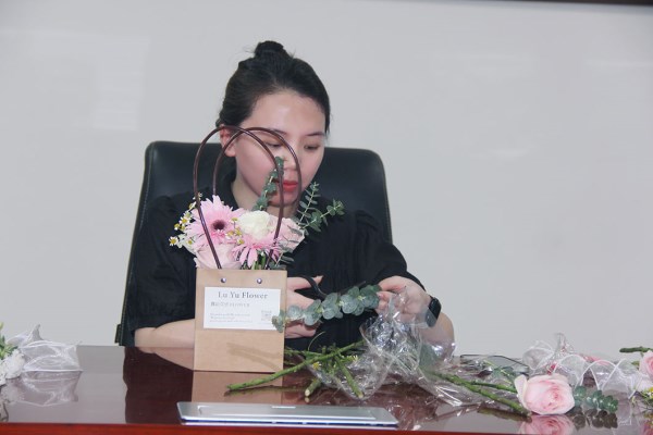活動中,專業(yè)插花師現(xiàn)場介紹鮮花的品質(zhì)和寓意,從花材選取、枝葉綁剪、色彩搭配等插花技巧進行講授,并同步演示插花工具的使用和插花步驟,使大家對插花藝術(shù)有了更深層次的認識。隨后,大家充分發(fā)揮自己的想象力和創(chuàng)造力,采取獨立完成或自由組隊共同完成的方式,選擇合適的花材及容器,用自己的巧手修剪、搭配花枝,將各色鮮花插入容器中裝扮成美麗的花束。