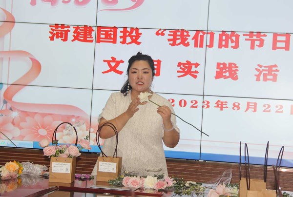 活動現(xiàn)場,菏建國投黨委委員、黨群工作部部長杜令瑞首先向大家介紹了七夕節(jié)的起源和七夕節(jié)的習俗,并希望大家在活動過程中學習插花知識、感受節(jié)日的美好,同時祝福公司廣大青年職工都能早日得遇良緣,組建幸福的家庭。