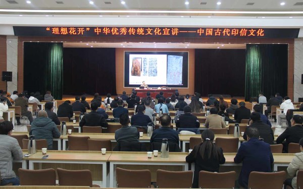 為踐行社會(huì)主義核心價(jià)值觀,發(fā)揚(yáng)中華優(yōu)秀傳統(tǒng)文化,11月17日,“理想花開”中華優(yōu)秀傳統(tǒng)文化宣講走進(jìn)山東省新時(shí)代黨的創(chuàng)新理論宣講基地菏建國投公司,山東大學(xué)文化遺產(chǎn)研究院教授、博士生導(dǎo)師劉海宇專題講授中國古代印信文化。市文聯(lián)、市工商聯(lián)、市發(fā)展改革委、市文化和旅游局、市國資委、人民銀行菏澤市中心支行、菏澤學(xué)院人文和新聞傳播學(xué)院等單位的有關(guān)負(fù)責(zé)同志;市和三區(qū)文博單位有關(guān)負(fù)責(zé)同志和相關(guān)業(yè)務(wù)人員;市屬國有企業(yè)有關(guān)負(fù)責(zé)同志;市、縣區(qū)書法家協(xié)會(huì)、美術(shù)家協(xié)會(huì),市工商聯(lián)各協(xié)會(huì)有關(guān)負(fù)責(zé)同志參加會(huì)議。