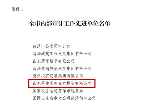 菏建國投獲評“全市內(nèi)部審計工作先進單位”