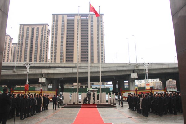 ![]() 在場全體干部職工向國旗行注目禮,齊唱國歌 |