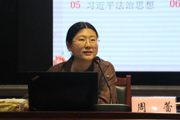 在宣講中,周蕾以“習(xí)近平文化思想”為主題,從充分認(rèn)識(shí)習(xí)近平文化思想的重大意義、深刻領(lǐng)會(huì)習(xí)近平文化思想的鮮明特征及豐富內(nèi)涵、深入貫徹習(xí)近平文化思想的實(shí)踐要求、深刻把握習(xí)近平文化思想的原創(chuàng)性貢獻(xiàn)等四個(gè)方面,詳細(xì)闡述了習(xí)近平文化思想的道理、學(xué)理、哲理以及中華優(yōu)秀傳統(tǒng)文化的豐富內(nèi)涵,和大家共同探討了如何在全球化背景下保持和發(fā)展本民族文化特色、如何處理好文化傳承與創(chuàng)新的關(guān)系、如何讓傳統(tǒng)文化在現(xiàn)代社會(huì)中煥發(fā)出新的生機(jī)與活力等問題。