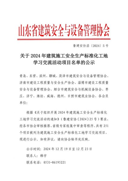 山東省建筑施工安全生產(chǎn)標(biāo)準(zhǔn)化工地學(xué)習(xí)交流活動項(xiàng)目,是山東省建筑安全與設(shè)備管理協(xié)會對菏建集團(tuán)獲獎項(xiàng)目安全生產(chǎn)管理與預(yù)防措施、職業(yè)健康安全管理體系的運(yùn)行和現(xiàn)場安全生產(chǎn)標(biāo)準(zhǔn)化措施等綜合管理水平的真實(shí)考量。