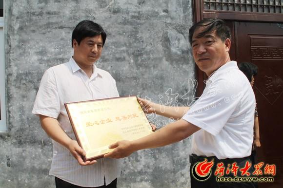 白浮圖鎮(zhèn)鎮(zhèn)長程曄向菏建集團(tuán)市政分公司贈(zèng)送匾牌