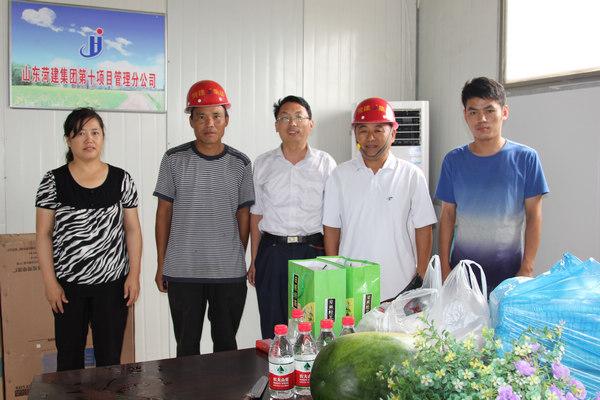 炎炎盛夏,熱浪滾滾。一線工人的工作和生活牽動著集團領導的心。7月19日始,工會主席呂麗英率工會的同志,奔赴縣、城區(qū)各工地現場,向工作在施工一線的工人同志們轉達集團領導的關心愛護之情,向他們致以親切的慰問。叮囑工地負責同志避開高溫時段安排施工作業(yè),做好防暑降溫,注意飲食衛(wèi)生,搞好夏季安全生產。一線的同志紛紛表示,感謝集團領導的關心愛護,一定要取得夏季施工生產的全面勝利。