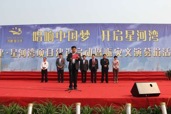 市委常委、定陶縣委書記張毓華宣布菏建·星河灣項(xiàng)目建設(shè)啟動暨賑災(zāi)義演募捐活動正式開始。啟動儀式由定陶縣人大常委會主任張峰主持。