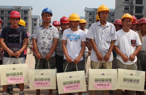 集團工會主席呂麗英向一線工人發(fā)放慰問品