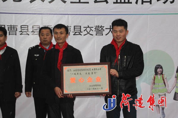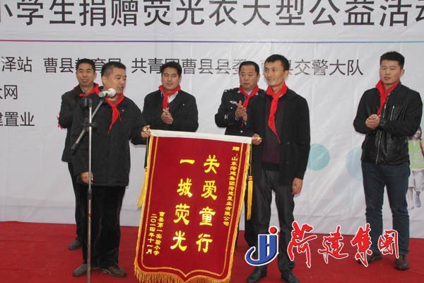 捐贈儀式上,曹縣第一實驗小學(xué)向集團(tuán)置業(yè)公司贈送了“一城熒光 關(guān)愛童行”的錦旗,大眾網(wǎng)菏澤站贈送了“愛心企業(yè)”的獎牌。