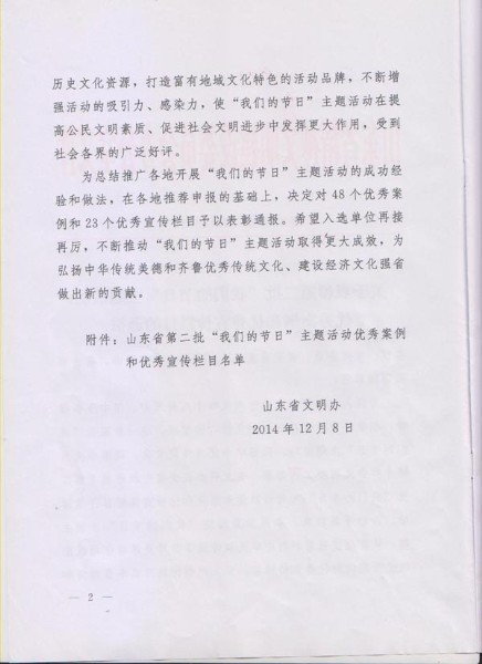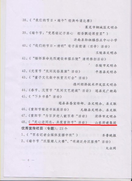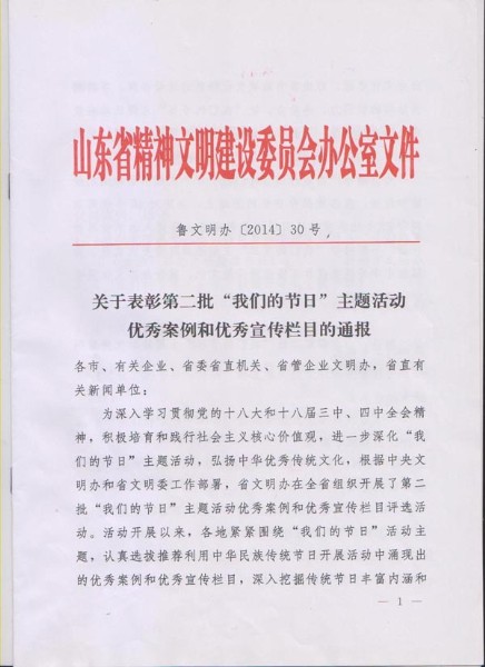 近日,在全省第二批“我們的節(jié)日”主題活動優(yōu)秀案例和優(yōu)秀宣傳欄目評選活動中,集團(tuán)《“關(guān)心老同志,共度重陽節(jié)”活動》案例被山東省精神文明建設(shè)委員會辦公室被評為優(yōu)秀案例。