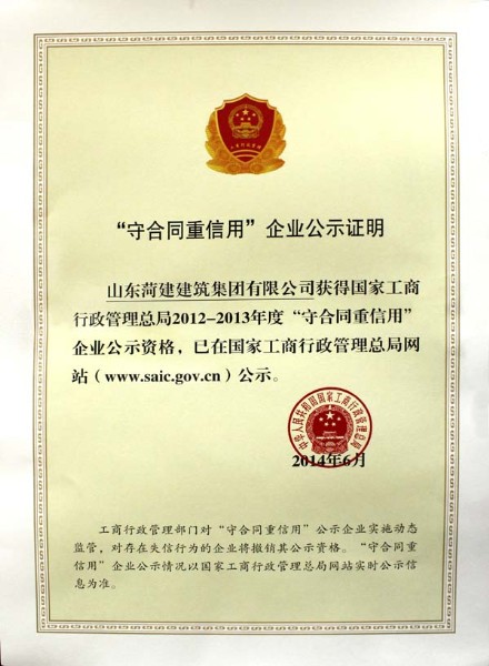 ![]() 國家級“守合同重信用”企業(yè)公示證明 |