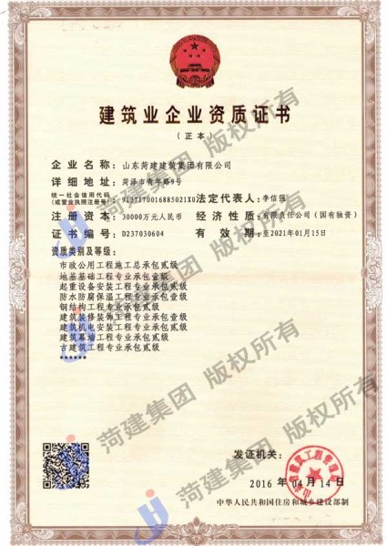 ![]() 市政總承包貳級資質(zhì) 地基與基礎(chǔ)工程專業(yè)承包壹級 起重設(shè)備安裝工程專業(yè)承包貳級 防水防腐保溫工程專業(yè)承包壹級 鋼結(jié)構(gòu)工程專業(yè)承包貳級 建筑裝修裝飾工程專業(yè)承包壹級 機(jī)電設(shè)備安裝工程專業(yè)承包貳級 建筑幕墻工程專業(yè)承包貳級 古建筑工程專業(yè)承包貳級 |